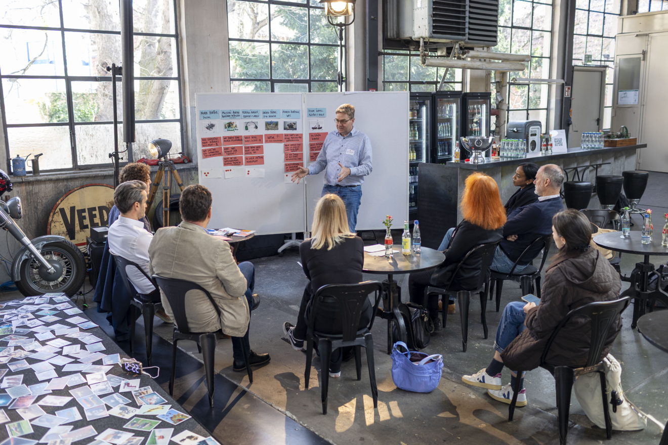 Aus Worten wurden Taten: Im Anschluss an die Diskussion lernten die Teilnehmenden in fünf parallel stattfindenden Zukunftsräumen mehr über verschiedene Anwendungsformen von KI in Unternehmen. Die Workshops mit Raum für Austausch und Reflexion boten eine gute Gelegenheit zum Eintauchen, Ausprobieren und Impulse mitnehmen.