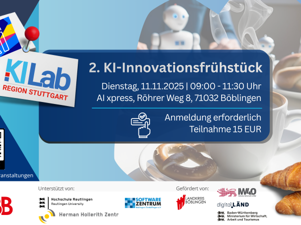Das KI-Lab Region Stuttgart und das AI xpress laden zum KI-Innovationsfrühstück ein – einer Netzwerkveranstaltung für Startups und Unternehmen.