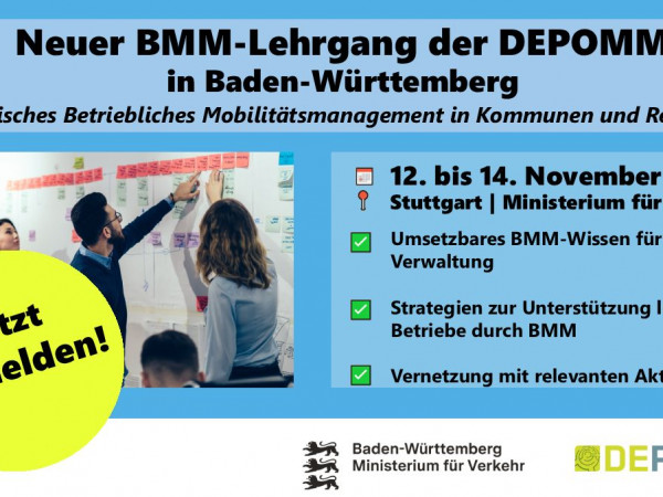 Neuer Lehrgang „Strategisches Betriebliches Mobilitätsmanagement in Kommunen und Regionen“ der DEPOMM e.V. in Kooperation mit dem Ministerium für Verkehr Baden-Württemberg! ...